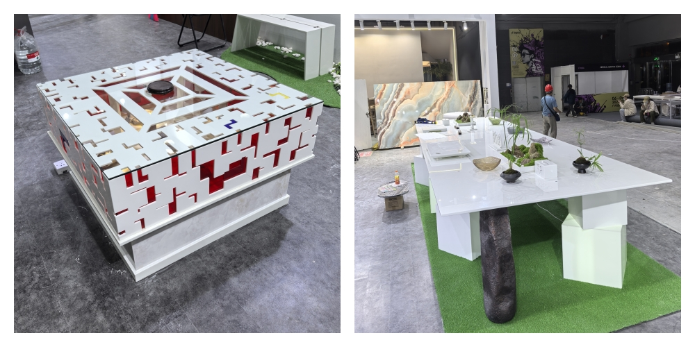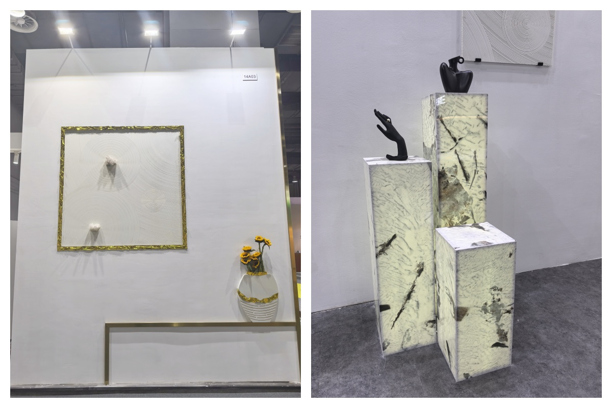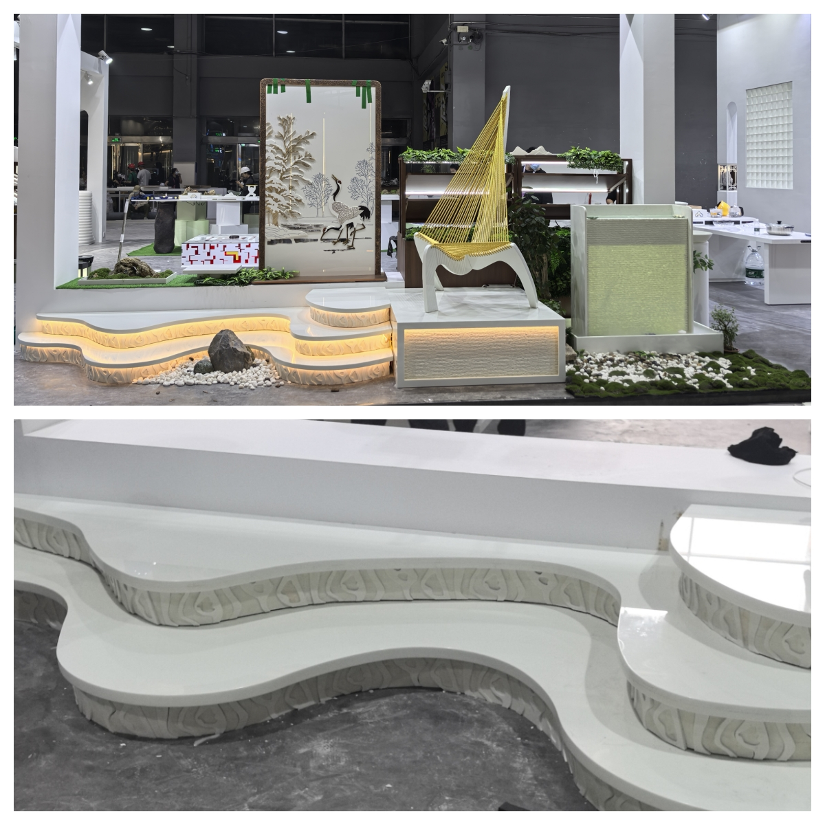 走进东方晶硅的展位,仿佛踏入了一个充满创意与灵感的梦幻世界。第一眼看见的就是艺术台阶,踏着艺术的节拍,引领你走向更高的设计境界。