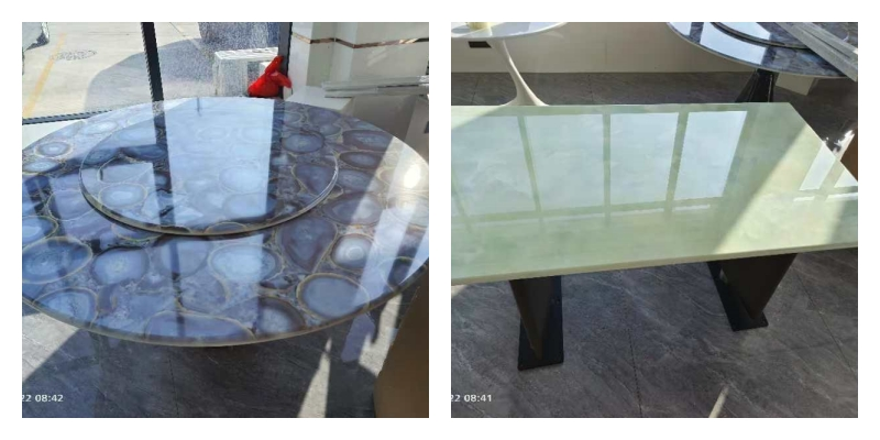 此次东方晶硅还带来了茶桌、圆桌、餐桌等系列产品,有的以原石花纹为特色,有的以独特的设计为特色,将自然的韵味与现代的设计完美融合。每一张桌子都仿佛是大自然的馈赠,让人时刻感受到大自然的温暖与怀抱。