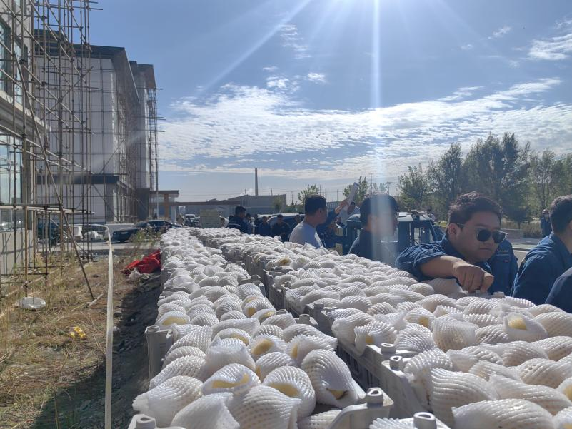 今年中秋的礼品是可口蜜哈密瓜、稻花香大米、东北大白梨、兴固高端定制月饼礼盒四件套大礼包,全公司所有员工人手一份。
