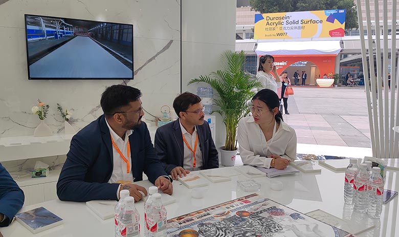 海外客商最大的关注点,核心是东方晶硅新材料产品,所拥有的传统材料不具备的优异性能,良好的导磁绝缘、晶莹洁净、温润如玉,美观大气、时尚轻奢等特性。以及大尺寸、厚板材等领先市场的规格、超大规模、物流供货能力等等,都是海外客户最关注的焦点。
