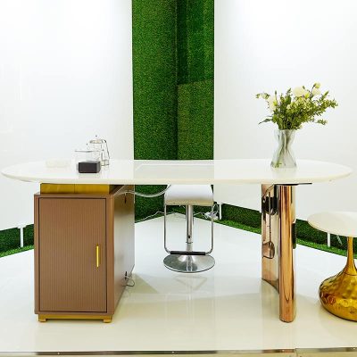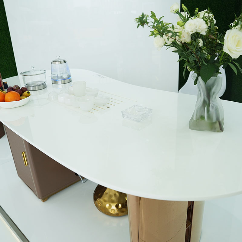 Unlike traditional tea tables, this Oriental Crystalline Silicon tea table not only possesses all the functions of conventional designs but also features modern amenities like wireless charging. Additionally, it retains all the superior qualities of Oriental Crystalline Silicon new materials: it is safe, healthy, easy to maintain, non-absorbent, and resistant to oil stains.